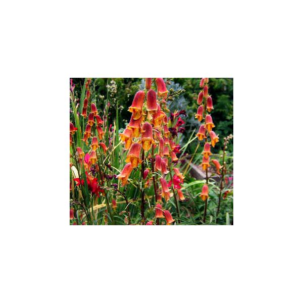 Digitalis obscura est une bi-annuelle ou une vivace de courte vie atteignant 1-2 pieds de haut et quelques fois 3 pieds. Elle est originaire des montagnes de l'Espagne. Chaque fleur pendante prend de magnifiques teintes de coucher de soleil, incluant des couleurs d'ambre, beige-brun, orange brûlé et rouge. La plante fleurie tôt au Printemps jusqu'au milieu de l'Été. Elle produit des fleurs de 1.5" de long pour 1 mois. La plante se développe un peu tel un buisson, ses tiges sont plus rigides, ressemblant à des branches. Les feuilles sont également ornementales, de teinte vert-grisâtre, étroites et linéaires. Les feuilles sont produites la première année et les longues tiges florales, la seconde. Zones de rusticité 5-9, (-26°C/-15°F, -5°C/25°F) en Hiver. Digitalis obscura se cultive au soleil ou partiellement à l'ombre dans un sol de jardinage moyen sans trop de composte. Bien arroser, mais pas trop fréquemment. Il a besoin d'un sol poreux et de protection là où les Hivers sont humides.