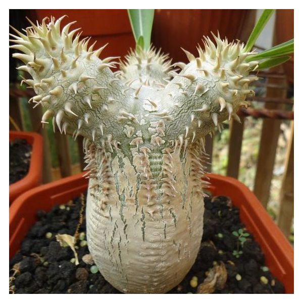 Pachypodium eburneum est une espèce endémique du centre de Madagascar. Les spécimens adultes atteignent environ 25cm de diamètre.