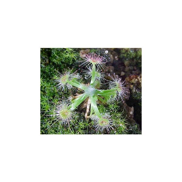 Drosera androsacea est une Drosera pygmy, endémique à l'Ouest de l'Australie. Cette vivace forme une rosette ouverte et plate, atteignant 8 mm en diamètre. Les fleurs sont blanches ou roses, et parsemées de veines mauves. La floraison se produit en Septembre et Octobre. La surface des feuilles est recouverte de tentacules collantes. Les insectes sont attirés aux feuilles par la luisance des poils et par le nectar. Une fois attrapé, l'insecte est digéré par les fluides digestifs émis par la plante. C'est une façon unique d'obtenir du nitrogène, permettant à ces plantes de vivre dans des sols pauvres en cette substance. Certains pourraient être découragés par leur taille, mais leur beauté réside en leur nombre. Parce que la plante se reproduit à partir de gemmes, elles couvrent rapidement une grande surface, formant un véritable tapis. Les Drosera Pygmées diffèrent des autres Drosera par leur capacité de former des gemmes. Ceux-ci sont des corps ronds se formant au centre de la plante. C'est en fait des semences qui n'ont pas besoin d'être fertilisées. Le pourcentage de germination est beaucoup plus élevé que celui des semences. Les plants se développent également plus rapidement. Puisque ces plantes produisent beaucoup de gemmes, elles se propagent facilement et rapidement. Lorsque la plante forme des gemmes, retirez-les à l'aide d'un pinceau et assurez-vous de les recueillir. Même si vous ne voulez pas de nouveaux plants, il est préférable de le faire, question de bien entretenir la plante et éviter les maladies. Zones de rusticité 8-10, (1°C/35°F, -10°C/15°F) en Hiver. La plante requiert des Étés chauds et secs et des Hivers froids et humides. Elle doit être cultivée en plein soleil, avec une protection du chaud soleil de midi. Dans les régions ombragées, une source de lumière artificielle est essentielle. La température doit être conservée entre 20°C/68°F et 25°C / 80°F. Drosera androsacea se développe dans des sols rocailleux, sablo-limoneux ou argileux, au milieu de broussailles basses. Cette Drosera Pygmée a de très longues racines et pousse mieux dans un pot profond, de 15 à 20 cm. Elles peuvent bien germer dans un mélange de mousse de sphaigne et de sable, qui peut être constitué de 30% à 100% de mousse de sphaigne. Vous n'avez pas à fertiliser puisque la plante compte sur les insectes pour se nourrir. L'humidité doit être entre 60-80%. Le sol doit être constamment humide en Hiver; ne laissez pas le sol s'assécher entre les arrosages. Pendant l'Été le plant devient dormant et devrait recevoir suffisamment d'eau pour conserver seulement la partie inférieure du pot humide, le dessus doit être plutôt sec. L'eau doit être distillée ou de l'eau de pluie, puisqu'elles ne tolèrent pas l'eau du robinet.