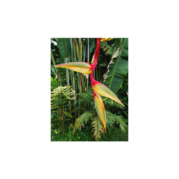 Ce magnifique Heliconia développe 8-15 bractées jaunes, rouges et vertes. L'arbre développe jusqu'à 35 floraisons. Les feuilles sont en apparence près de la famille des bananiers.