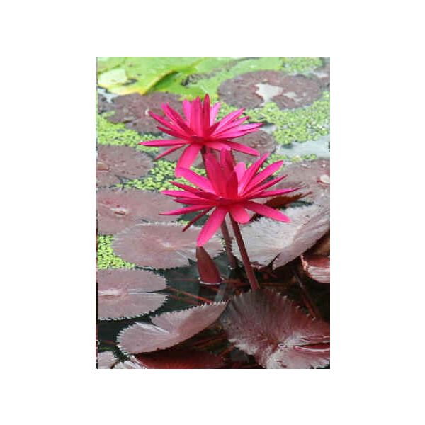 Le Nymphaea Red porte très bien son nom. Cette fleur de jour tropicale ne passera jamais inaperçue dans aucun étang. Ses fleurs robustes rouge-grenat semblent planer au-dessus de l'eau au crépuscule, créant un effet presque mystérieux. Les lis tropicaux sont une nécessité pour n'importe quel jardin d'eau en dépit du fait qu'elles ne résistent pas à l’hiver dans les régions froides. La plupart des fleurs de lis tropicales sont plus grandes et dans la plupart des cas les couleurs sont plus intenses que les lis plus robustes. Cette belle plante tropicale a une excellente floraison, elle peut produire 6 ou 7 fleurs à la fois ! Il est également extrêmement prolifique. Les fleurs sont portées hautes, au-dessus de l'eau. Elle est vraiment une des meilleurs parmi les fleurs rouges de nuit. C'est une excellente plante pour les débutants. Le Nymphaea Red a de magnifiques, superbes fleurs rubis, belles, foncées avec des anthères marrons et les sépales rouge-foncé. Cette plante a la teinte rouge la plus foncée parmi toutes les tropicales. Les fleurs sont tenues au-dessus de l'eau à environ 1 pied de hauteur. Les grandes fleurs sont rondes et plates et cette plante fleurit librement. Les fleurs ont de 7- 10 po de diamètre, avec 19 - 20 pétales et un parfum faible mais piquant. Ils fleurissent du milieu de l'été au début de l’automne. Cette plante herbacée a un beau feuillage même lorsqu’elle n’est pas en fleur. Les feuilles sont couleur bronze rouge et fortement dentelées sur le dessus avec des dessous pourpres. Les feuilles cuivrées, tachetées de violet, sont énormes, soit 10 à 12 pouces de diamètre avec une diffusion de 5' - 6' quand elles sont plantées dans des récipients de 3-5 gallons. Les feuilles onduleuses prennent une forme plus arrondies avec le temps. Zone de rusticité : 9-11 (-5c/25f, 4c/40f) Le Nymphaea Red Flare sera mieux dans un grand étang, mais il convient aux marais et aux jardins d'eau aussi. Il préfère être placé entièrement au soleil. Ce lis d'eau aime une eau modérément acide à neutre, et une profondeur d'eau d’environ 12 à 18 pouces. La température de l'eau doit être d’au moins 70 degrés F, jour et nuit pour que les lis tropicaux survivent. Les fluctuations des conditions atmosphériques de quelques régions, au printemps, pourraient refroidir l’eau et faire mourir les lis tropicaux. Il est sage d'attendre que toute possibilité de températures froides soit passée avant de mettre les plantes tropicales dans l'étang.