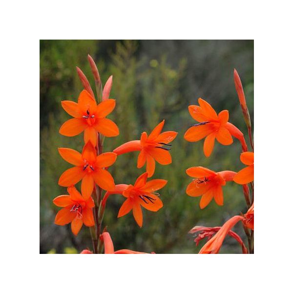 Watsonia pillansii est une plante vivace rhizomateuse à feuilles en forme d'épée et ramifiées en pointes courbes. La floraison offre une multitude de fleurs orange de 5 centimètres, elles deviennent rouge en automne. La Bugle Lily a généralement des fleurs écarlates à orange et possède des feuilles robustes, préférant l'humidité toute l'année. Cette plante est présente dans la moitié de l'Afrique australe sur des sols rocheux et des prairies. C'est une fleur populaire dans la décoration de jardin. Watsonia pillansii est très cultivé en massifs, dans des lits mixtes ou des frontières, des jardins de rocaille, des murs de soutènement et des terrasses.